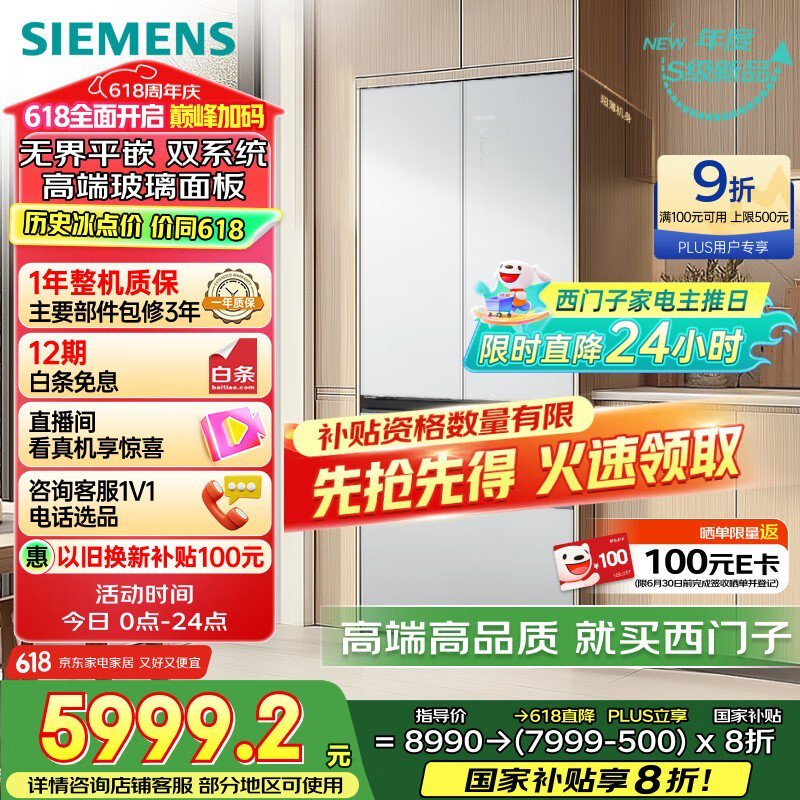 西门子504L无界平嵌冰箱限时特惠