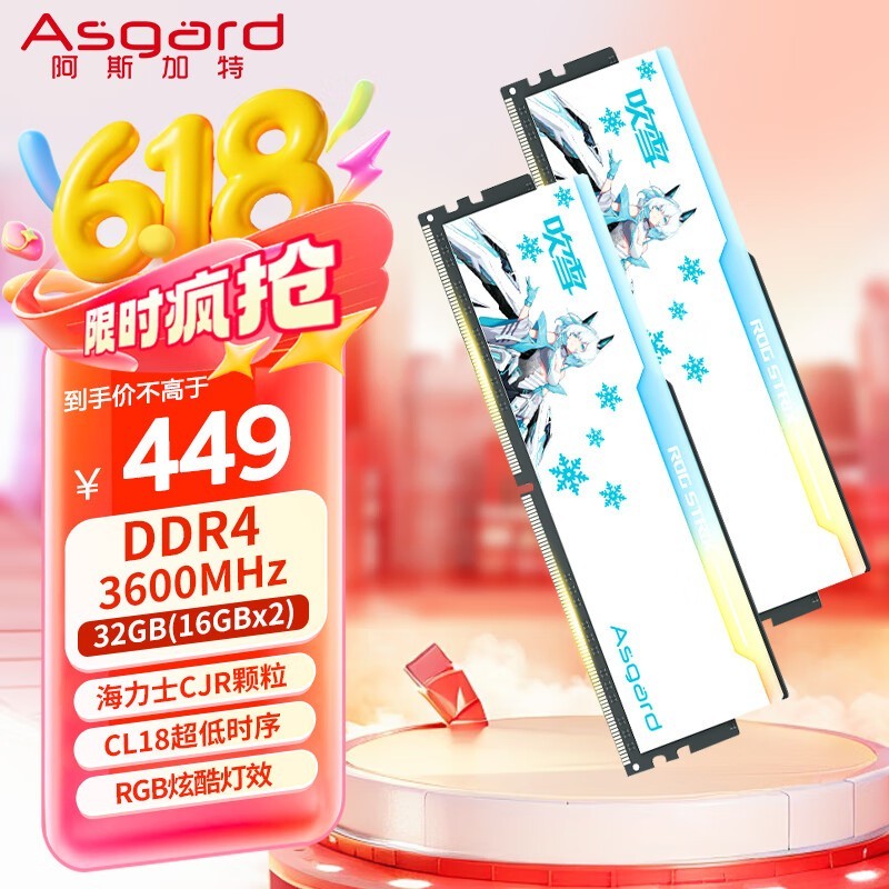 阿斯加特吹雪款32GB台式机内存条仅需449元