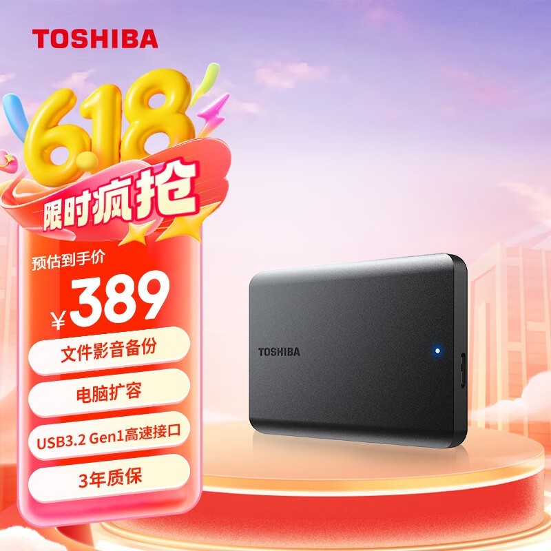 东芝新小黑A5 1TB移动硬盘京东热销价350元