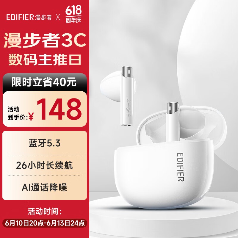 漫步者Zero Buds半入耳式真无线降噪蓝牙耳机限时特惠