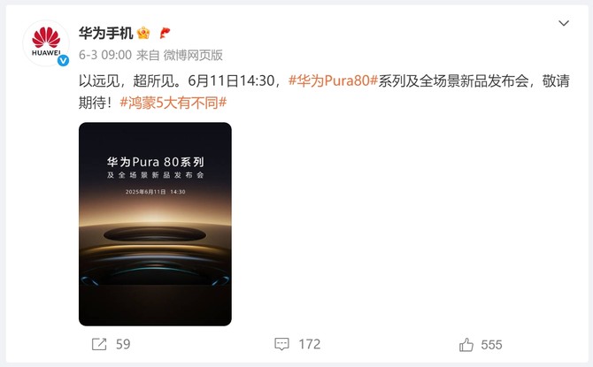 6月11日,华为Pura 80系列及全场景新品发布会即将拉开帷幕。当移动影像王者再次归来,我们有理由期待,它将带来的不仅是一款手机,更是一场关于“记录与表达”的全新革命。从大光比场景的精准捕捉,到长焦影像的极致进化,再到“远远不止”的多元创新,华为Pura 80系列正在重新定义手机影像的可能性。让我们屏息以待,见证移动影像的下一个巅峰时刻。