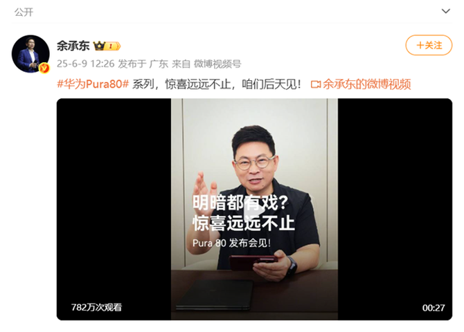 6月9日,华为常务董事、终端BG董事长余承东发布的一支华为Pura 80系列预热视频,如同一颗重磅炸弹,在科技圈掀起轩然大波。