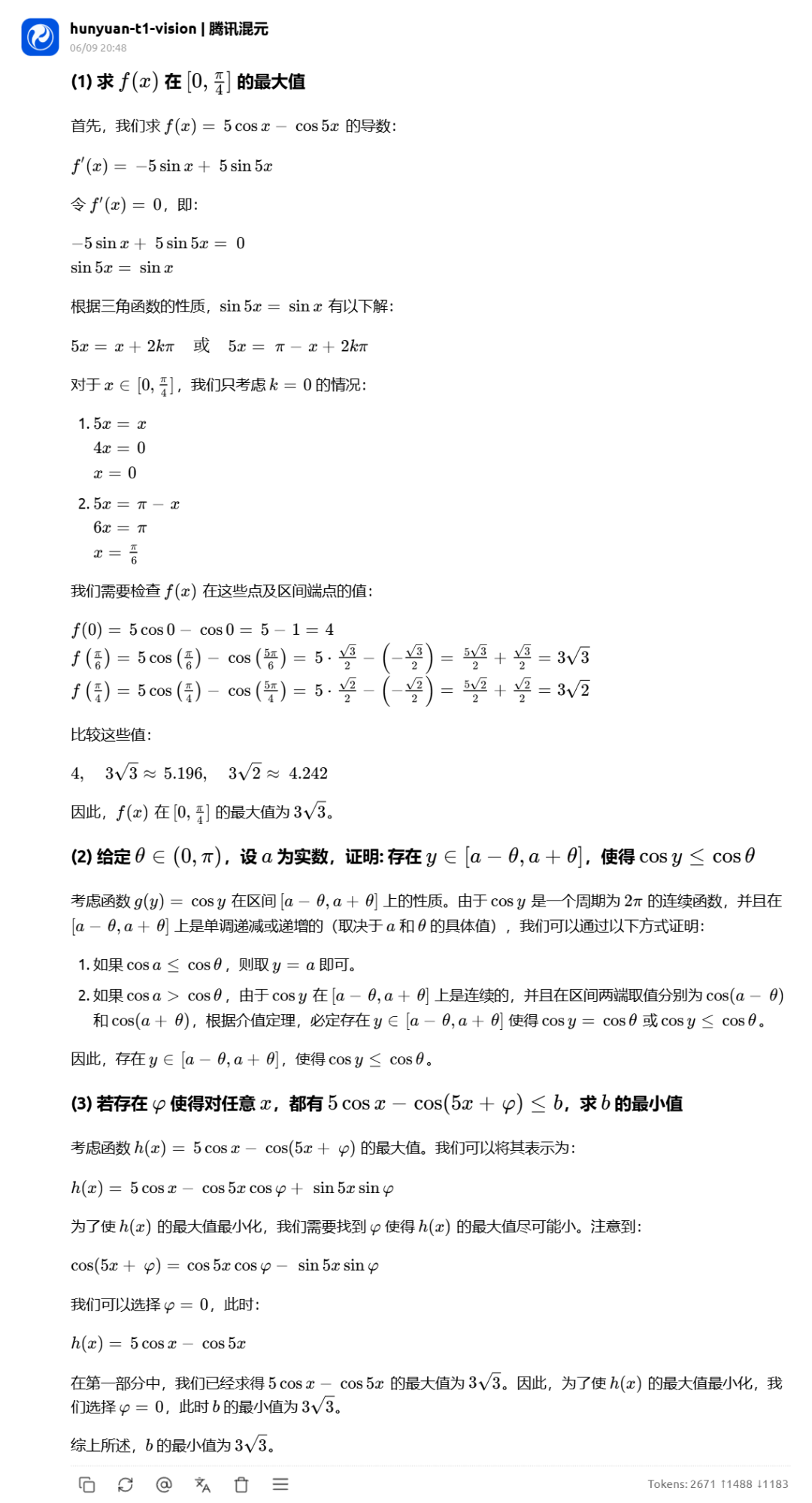 hunyuan-t1-latest 在第(2)问上思路可行但证明过程模糊,扣 2 分,到了第(3)问没有判断 phi 取值,又扣了 2 分。