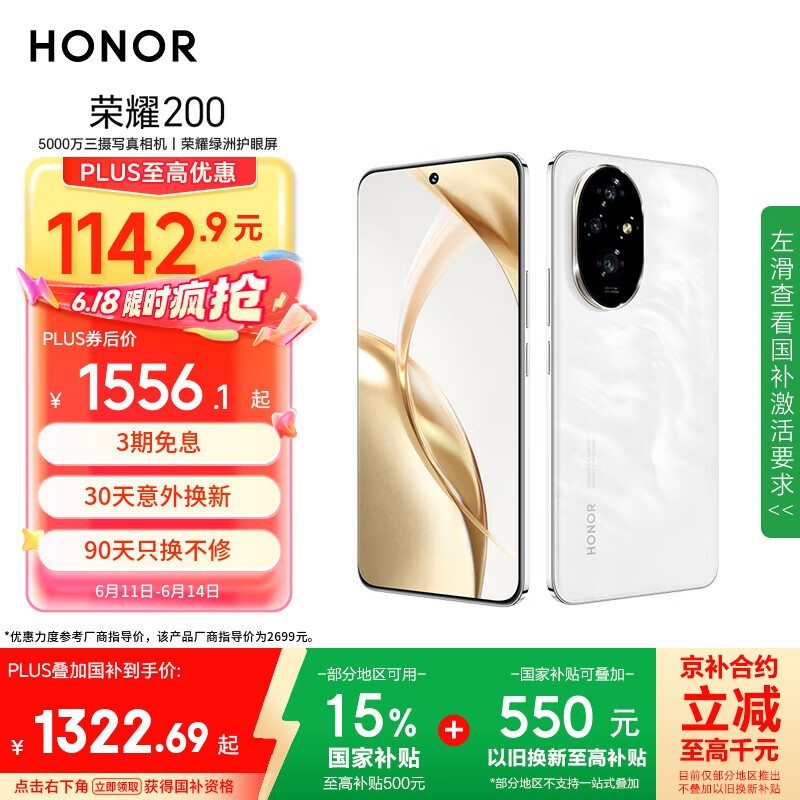 荣耀HONOR 200 5G手机京东优惠价低至1315元