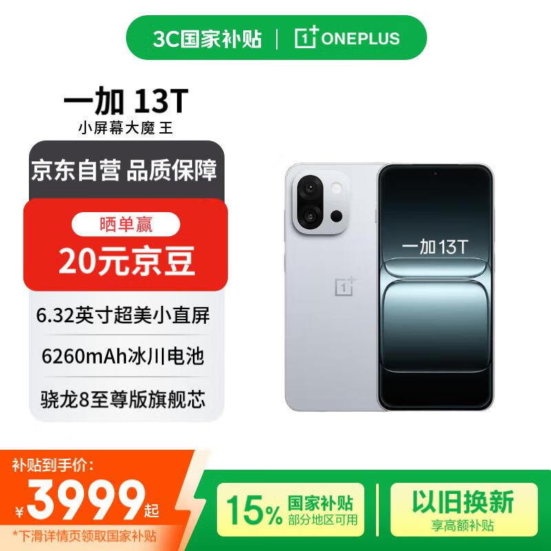 一加OnePlus 13T 16GB+1TB晨雾灰京东优惠价低至3561元