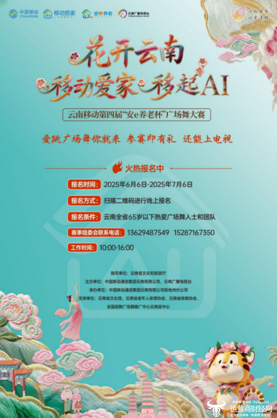 夏日炎炎,热情似火!以“花开云南 移动爱家 移起AI”为主题的云南移动第四届“安e养老杯”广场舞大赛开始报名啦!无论你是谁,只要怀揣对舞蹈的热爱,都可以加入这场盛会,参加就有机会赢万元大奖,还可以上电视!