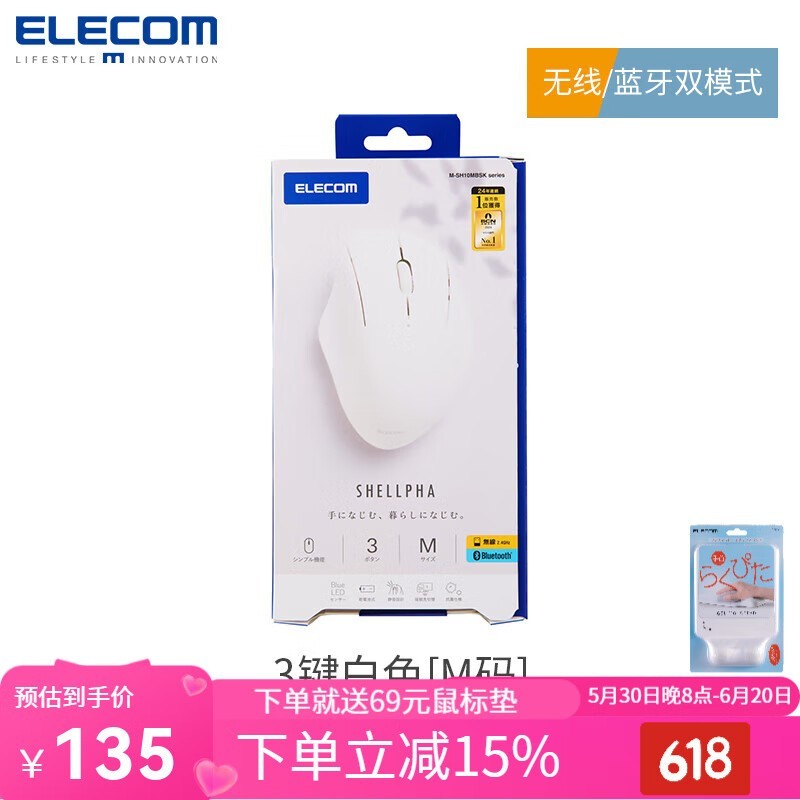 ELECOM宜丽客贝壳鼠标限时特惠135元