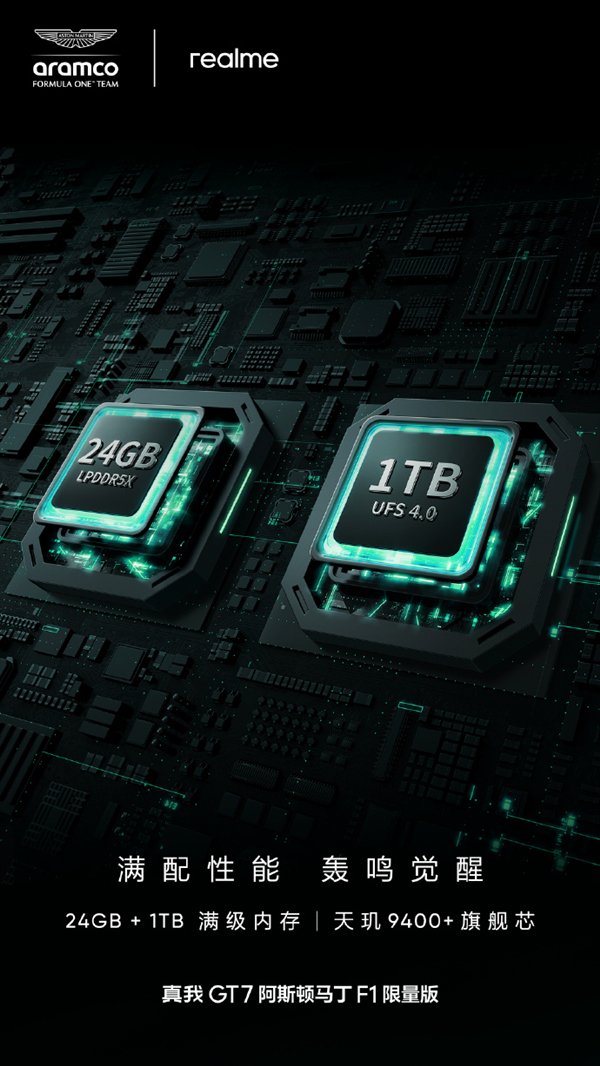 徐起表示,“标准版顶配16GB+1TB,真我GT7阿斯顿马丁F1限量版,超豪华内存配置,专属24GB+1TB,将极致性能进行到底”。