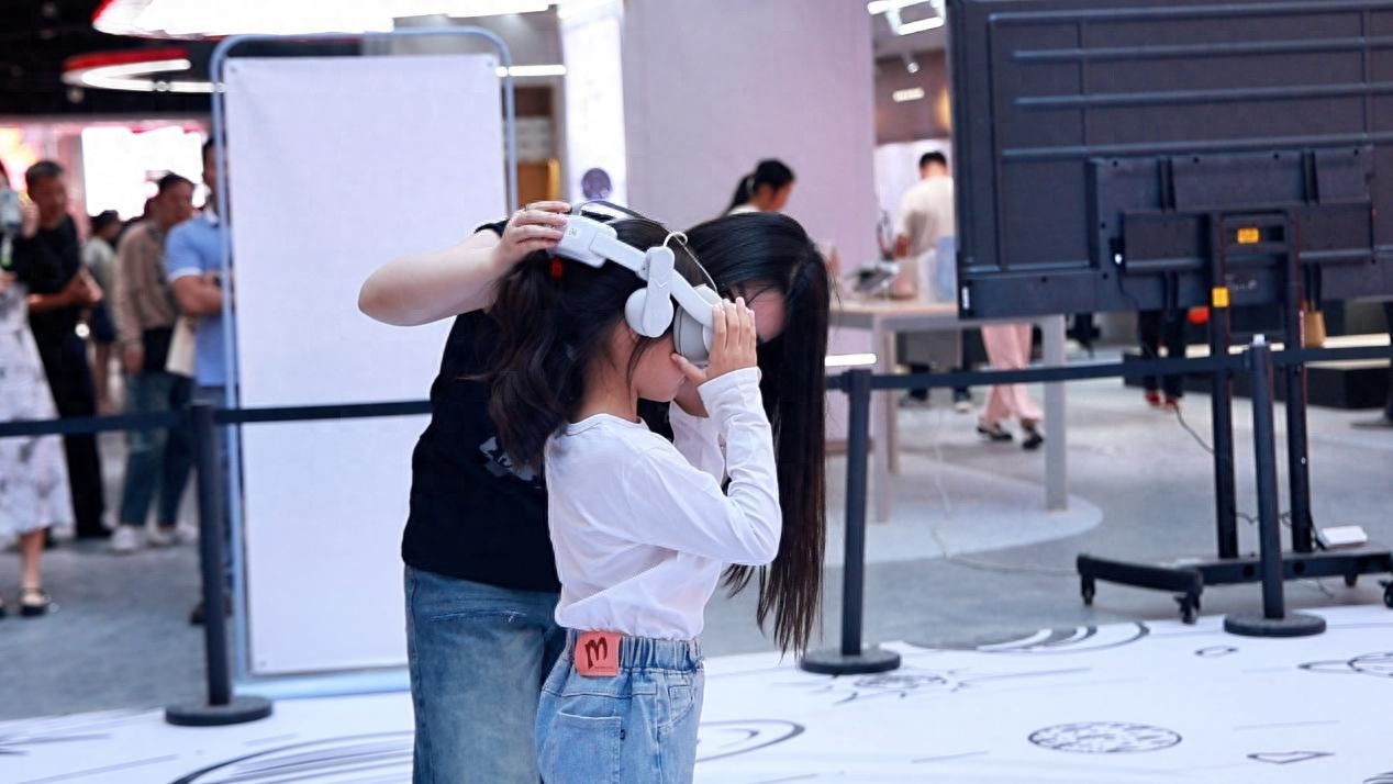 客户在志愿者的耐心指导下戴上VR设备,瞬间“穿越”至长安街头,惊叹连连,参与者仿佛置身于贞观年间的长安城:恢弘的宫殿、熙攘的市集、身着唐装的行人栩栩如生。亲子家庭尤其热衷互动环节,孩子们在家长陪伴下“触摸”历史,欢声笑语不断。