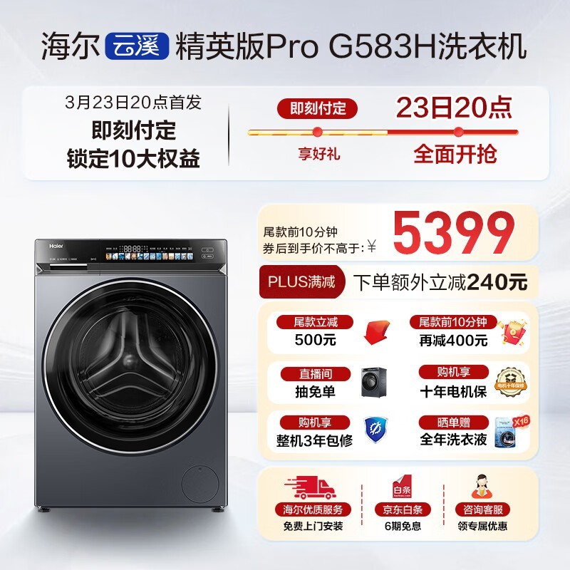 海尔云溪滚筒洗衣机10kg大容量智能变频静音家用洗护神器