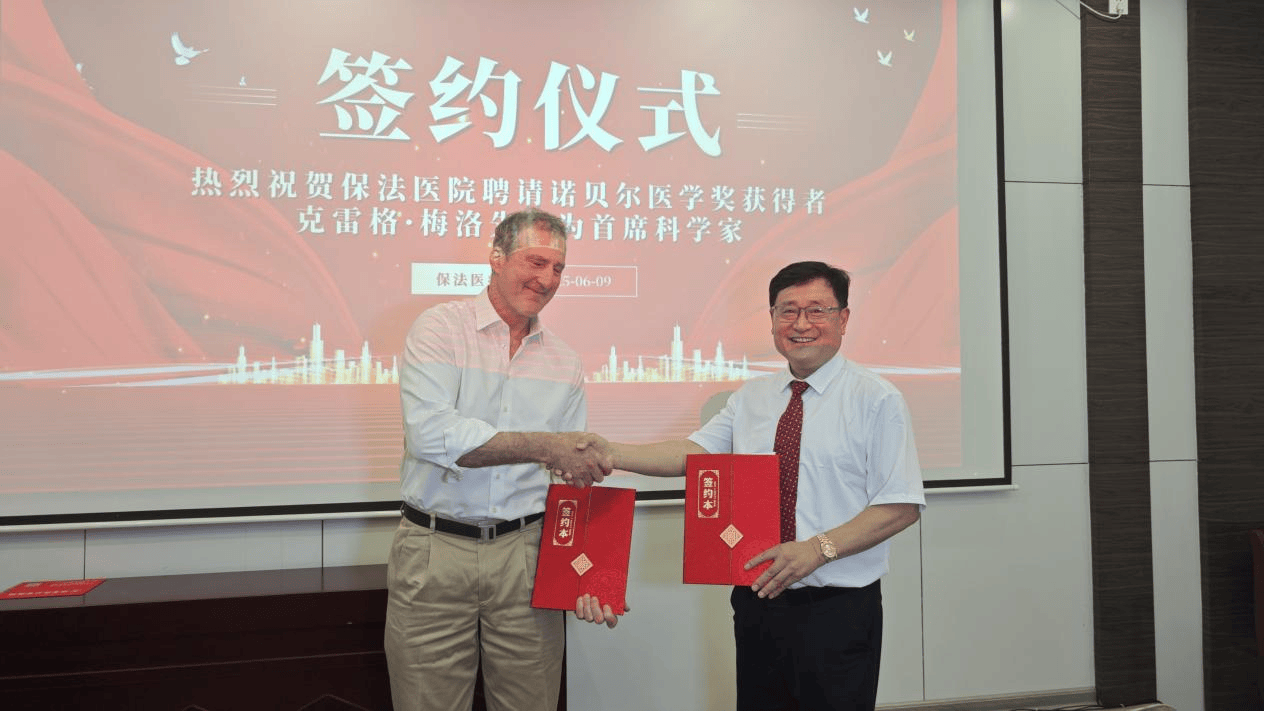 梅洛教授与于保法教授会前合影2016年,梅洛教授在“第三届诺贝尔奖获得者医学峰会”上,对泰美宝法肿瘤医院院长于保法教授发明的“缓释库疗法”给予高度评价。时隔九年,这场源自国际顶尖学术平台的对话在山东东平续写新章。梅洛教授的到访不仅是国际前沿科学理念与中国本土创新的深度对话,更是架设起中外肿瘤研究合作的新桥梁。