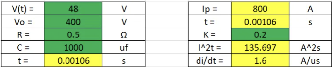 V(0):电容的初始电压(以400V为例)