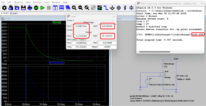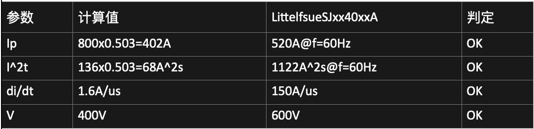 *电容放电波形是指数波形,SCR规格书中的测试波形是正弦波,所以需要乘以校正系数K=0.503,然后再和规格书中的值做比较。