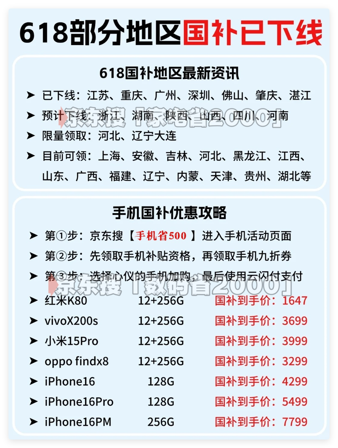 - 高危预警:重庆、江苏等地因额度紧张,已启动每日限量发放,建议消费者通过京东APP搜“手机省500”或“数码省2000”锁定资格。