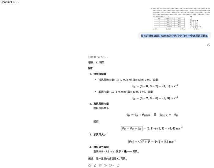 相比之下,Doubao 和 o3 至少正确识别了坐标位置,只是误判了视风风速方向,而 Gemini 连基本坐标都未能正确识别。