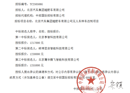 日前,“北京汽车集团越野车有限公司无人车样车改制项目”公布中标结果。运营商财经网发现,中标企业北京享智科技有限公司成立于2017年4月,这意味着一家刚成立8年的企业中标国企招标项目,具体什么情况?