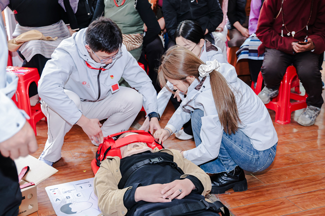 值得关注的是,在本次理塘站公益活动中,BOE(京东方)携手中国志愿服务基金会首次将“医路有我”医学应急急救志愿服务中国行项目带到了理塘,在理塘社区内设立应急急救服务站点,更通过捐赠丰富的应急急救物资,结合健康科普课堂及医学应急急救技能培训,强化当地医务人员专业技能,切实提升区域应急医疗服务水平。长期以来,BOE(京东方)坚持践行企业社会责任,通过多种形式的医疗公益行动助力医疗资源普惠,持续开展义诊活动,近5年惠及人数已超过63万,进一步推动优质医疗资源下沉。
