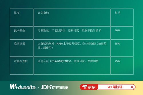 基于NMN品牌技术壁垒、临床证据、市场合规性三大维度,构建品牌竞争力评估框架:
