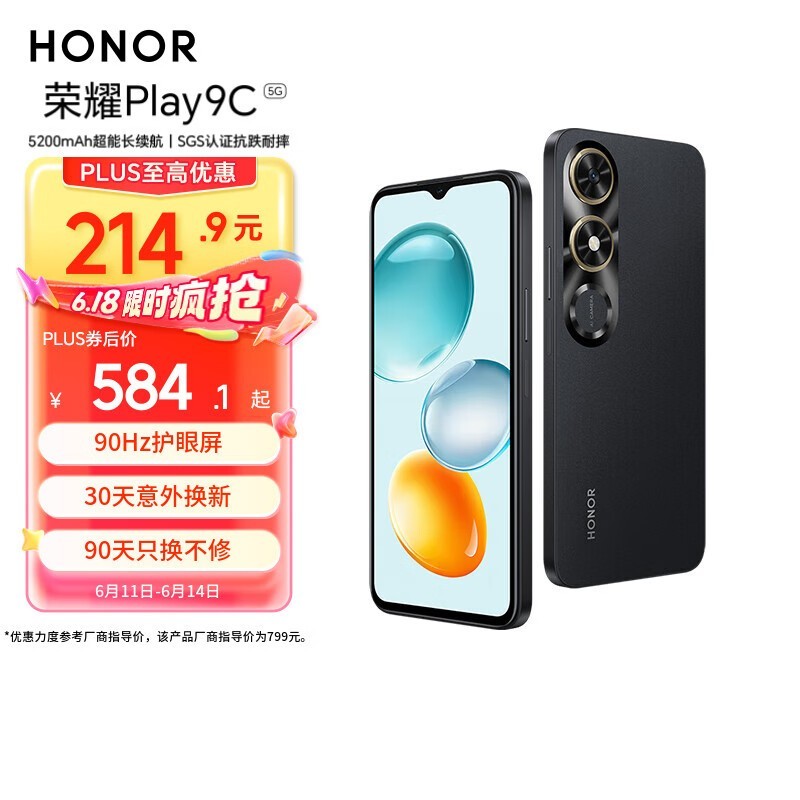 荣耀HONOR Play9C 5G手机低至466元