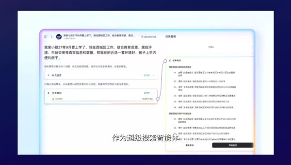 在发布会上,周鸿祎也让纳米AI做出了一个示范:做一份关于学区房的研究报告。