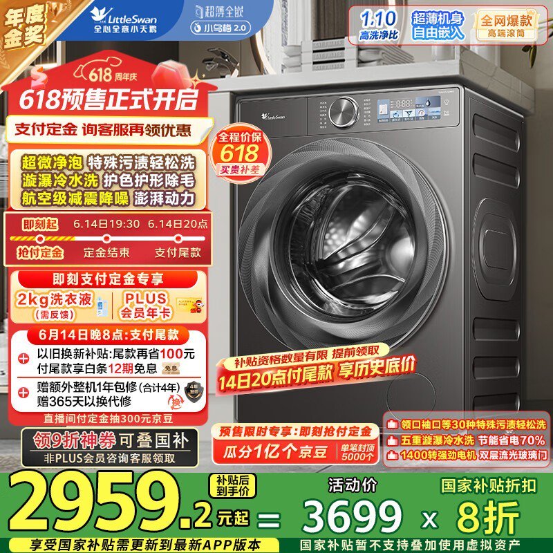 小天鹅小乌梅2.0洗衣机1935元钜惠!