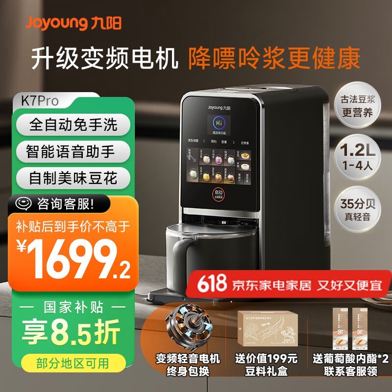 九阳轻音免手洗豆浆机K7Pro限时特惠
