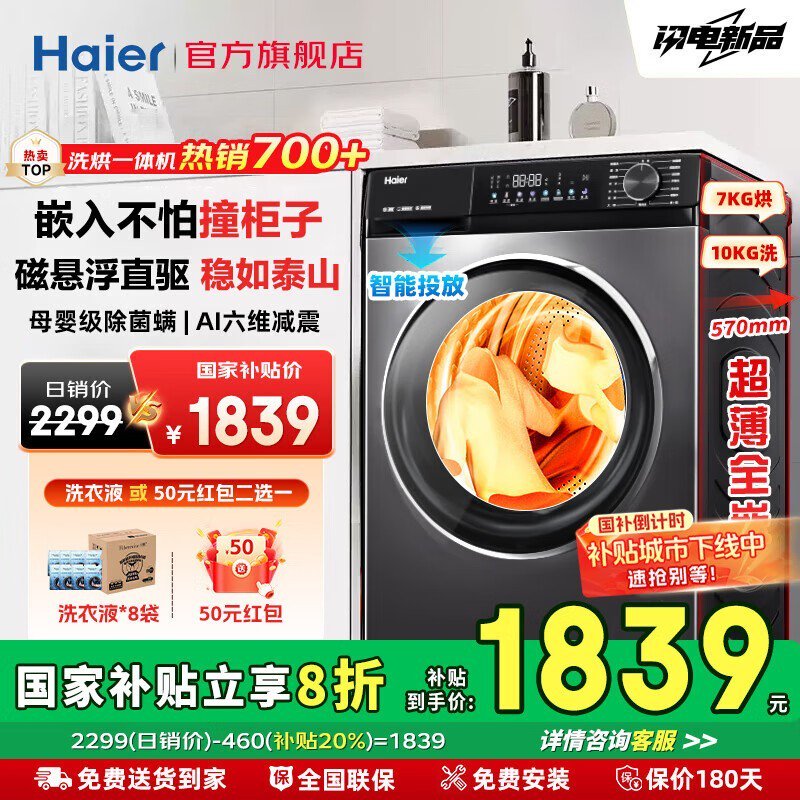 海尔Haier小红花洗烘一体机直降千元限时抢购