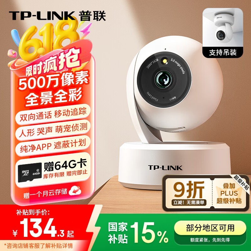 TP-LINK IPC45AW智能摄像头限时特惠80.61元