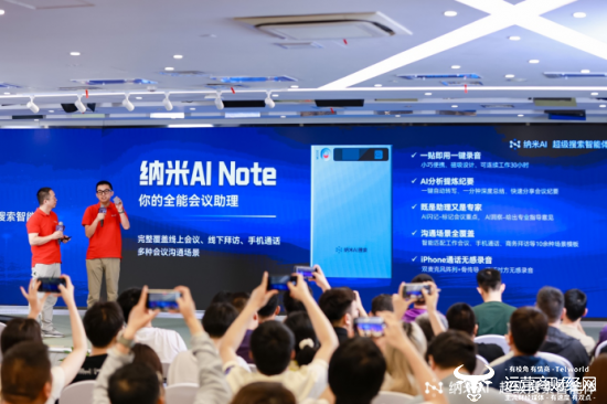 发布会最后,周鸿祎还透露了大模型和智能体应用和全新AI硬件结合的“One more thing”,包括能够接入个人知识库、在工作会议、商务拜访、沟通通话等十余种高频场景下使用的AI智能录音硬件纳米AI Note,以及和Rokid的联名款AI眼镜。纳米AI保持生态开放,通过开放AI搜索能力可以无缝调用文字、语音、图像,深入场景定制,与新兴硬件结合的市场想象力正逐步展开,共同打造AI硬件。