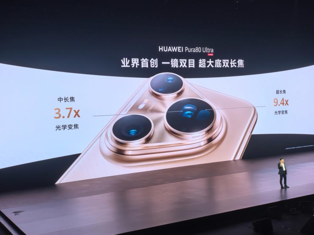华为Pura 80系列还实现了超大底与超长焦的完美结合。其业界首创的一镜双目长焦,成为本次发布会的一大“爆点”。通过一镜双目的双焦段切换式长焦结构,将3.7x中长焦镜头与9.4x超长焦镜头合二为一,配合1/1.28英寸业界最大长焦传感器,实现长焦画质全面飞跃。业界首创超精密双光路切换机构,140+精密配件紧密配合,经过18万次可靠性测试,在拍摄舞台场景、高倍率场景、长焦人像等场景下,具有超强细节还原能力。