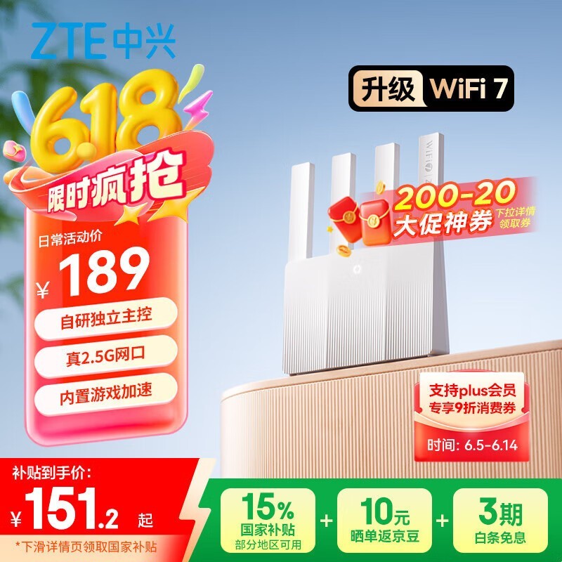 中兴巡天BE3600Pro青云版无线路由器限时特惠170元