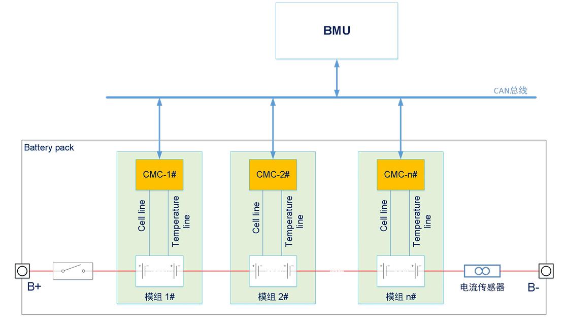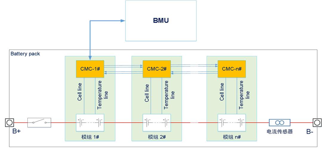 此类结构中,多个CMC通过CAN总线与BMU通信,形成标准的总线拓扑。CAN总线具备通信稳定、协议成熟、传输距离适中等优点,是目前应用最广泛的BMS通信方式之一。