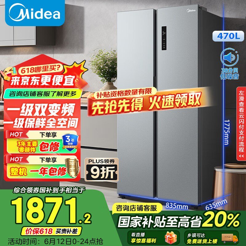 美的BCD - 470WKPZM(E)冰箱促销,到手价1163元
