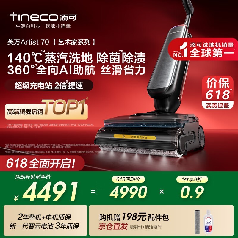 添可芙万Artist70无线洗地机月岩灰,飓风吸力+超长续航