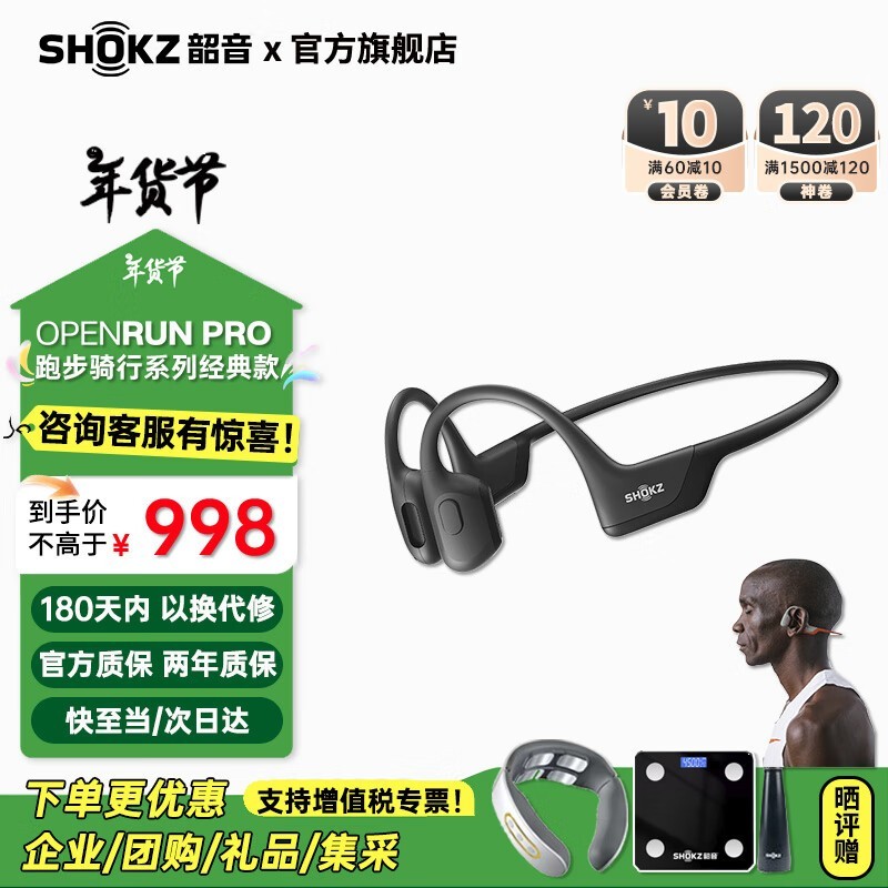 韶音OpenRun Pro骨传导耳机促销,到手601元