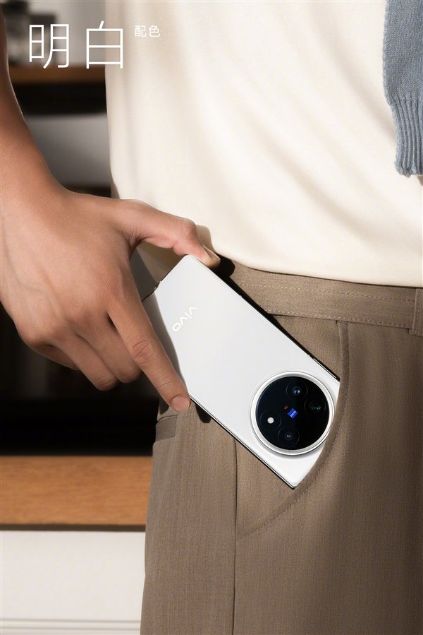今天上午,vivo官方公布了vivo X Fold5三款配色,包括青松、明白、钛度,手机采用环形镜头设计,同时印有蔡司和T*镀膜标识,整体简约大气。