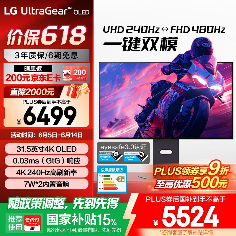 LG 32GS95UV 31.5英寸OLED显示器京东优惠价