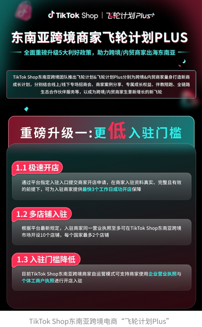 · 第四,营销大促升级。TikTok Shop东南亚跨境电商将推出全新营销玩法,帮助商家把握东南亚 “节日经济密集” 的市场特性,赢取品牌破圈和爆发式增长。