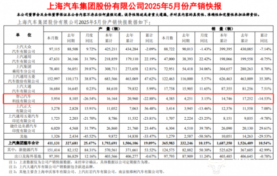 近日,上汽集团正式发布了2025年5月份产销快报。运营商财经网注意到,尽管已经连续三个月实现销量增长,但1-5月份智己汽车的累计销量下滑幅度依旧不小,具体是什么情况?