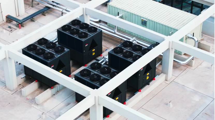针对园区的制冷和供暖需求,园区共安装了 16 台 120P 的低温空气能冷暖机及 14 台空气能热泵多联机。结合园区各种建筑不同的用能需求,以各楼层、独栋不同单元为单位,分别匹配建设系统能源站,这一创新方案不仅更贴合园区复杂的用能需求,而且在使用上更加灵活高效。