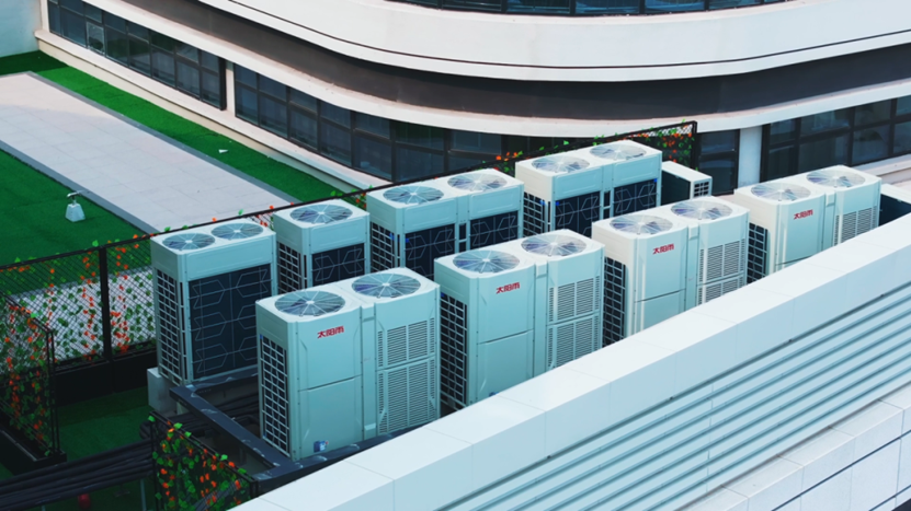 针对园区复杂多样的能源需求,太阳雨工程师团队深入调研,为园区量身定制了“光伏发电+低温空气能冷暖水循环机组+热泵多联机”解决方案。