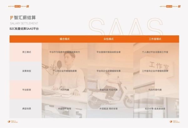 作为核心SaaS产品之一,智汇薪结算打破"一刀切"的传统模式,提供众包结算、撮合结算、工作室结算三维架构,精准匹配灵工各项场景需求。针对内容创作者简化收入流转、外卖&网约车等灵活用工场景报酬结算、医美和知识付费行业的税务管理等多场景提供全链路财税解决方案,确保数据透明可控。