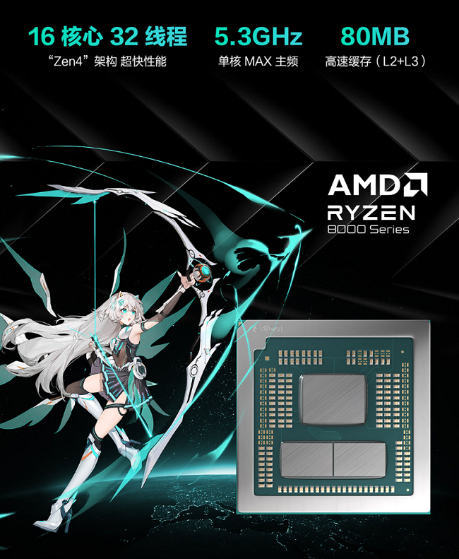 对于追求高性能游戏体验的玩家而言,天选6 Pro锐龙版无疑是理想选择。其搭载AMD 锐龙 9 8940HX处理器,16核心32线程,单核MAX主频达5.3GHz,能无压力运行各游戏与大型软件,高达80MB的高速缓存可大幅提升游戏数据读取和处理速度,游戏性能更进一步。同时配备GeForce RTX 5060笔记本电脑GPU,支持DLSS 4技术,超高画质下也能保持高帧数。