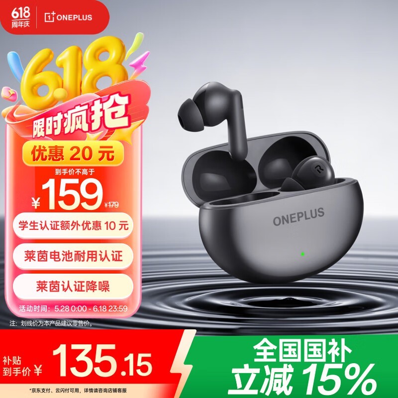 一加OnePlus Buds Ace 2蓝牙耳机京东促销低至126元