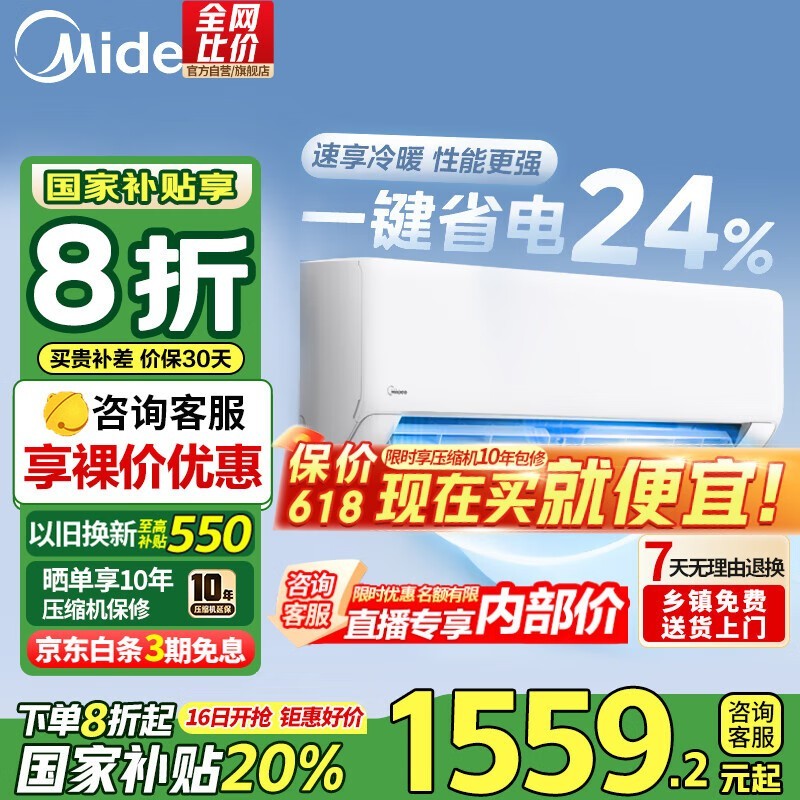 美的空调1.5匹冷静星35XA1P节能省电促销