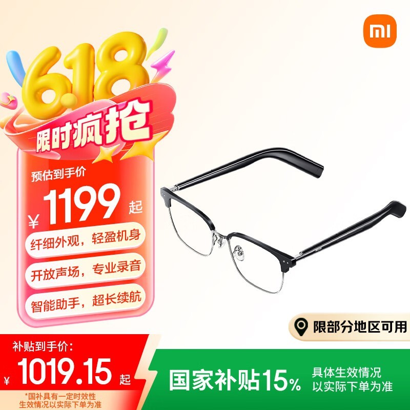 小米Xiaomi mijia智能音频眼镜2京东优惠价929元