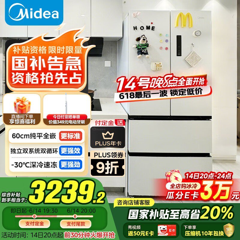 美的M60冰箱优惠多,原价5099现2943.24
