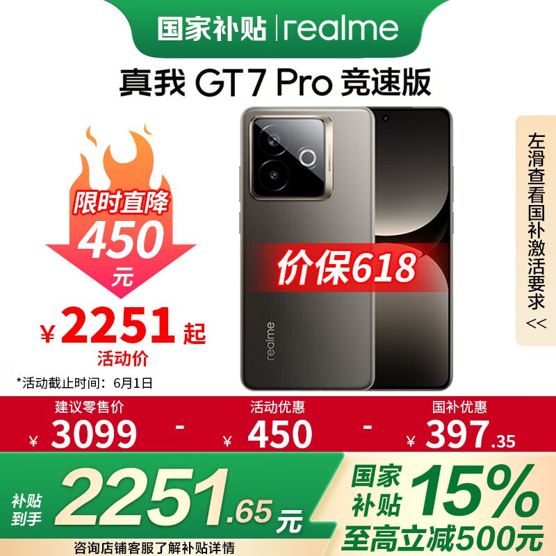 realme GT7 Pro竞速版5G手机限时特惠2869元