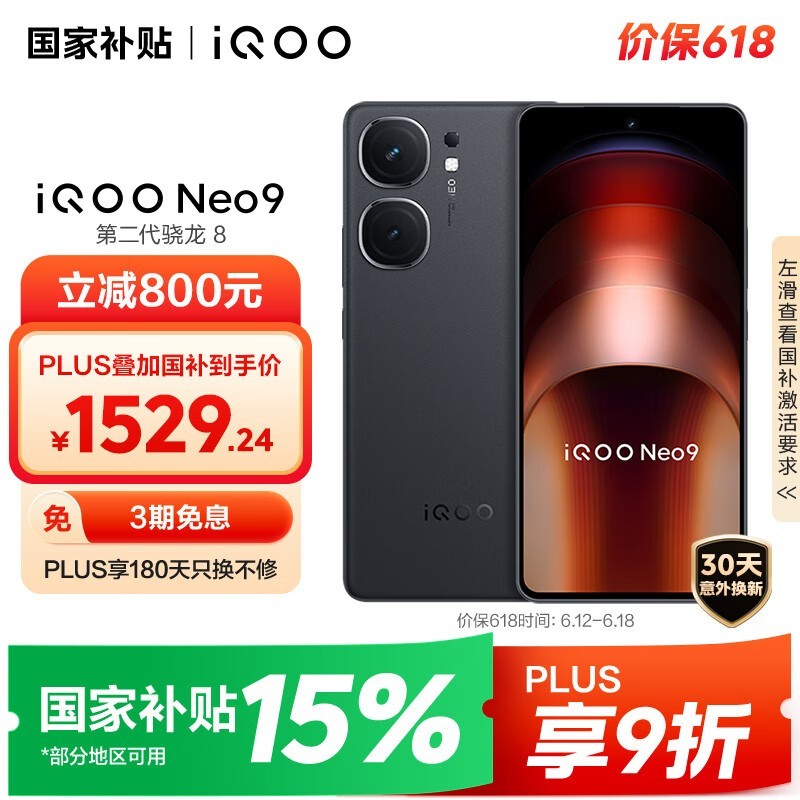 iQOO Neo9 5G手机限时特惠,16GB+512GB格斗黑仅需1350元