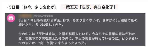 第二天,苦味依然存在,其称第一天是因为“到底有多难吃”的好奇心战胜了求知欲,但第二天连这种好奇心都没有,只剩下单纯的难吃。
